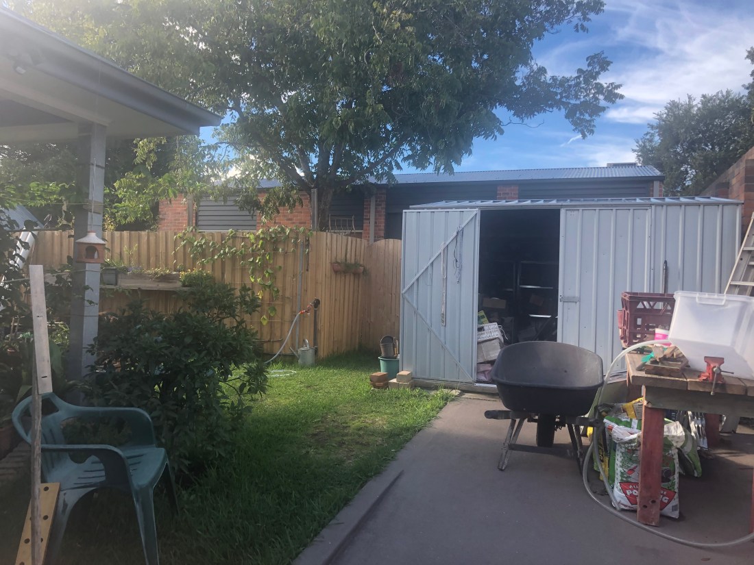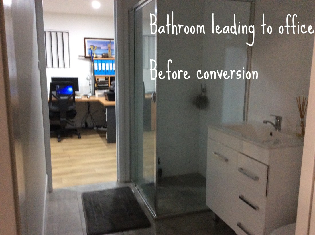 It began a very nice and generous garage- especially as I was prepared to build from scratch/ convert-expand a single garage. Extremely lucky to find as it already had an attached office and bathroom installed that connected to the 2 1/2 car concrete space with roller-doors.